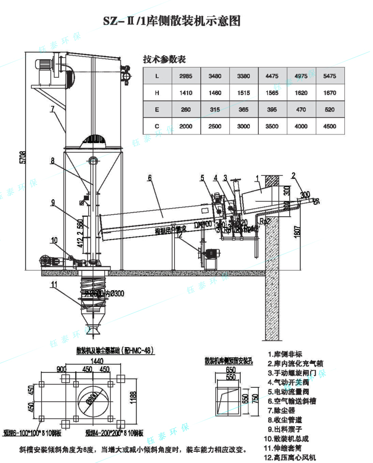 散裝機(jī)自帶除塵器,過濾面積為64m2,排塵濃度≤30mg/Nm³(滿足國家環(huán)保有關(guān)標(biāo)準(zhǔn)要求)。